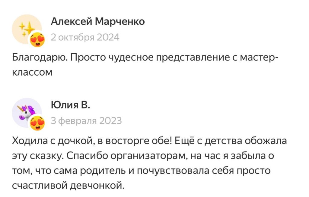 Мы создаём не просто спектакли и мастер-классы, мы вдохновляем, учим, развиваем, вовлекаем и раскрываем индивидуальность каждого зрителя. Мы делаем теневые номера по индивидуальному сценарию. У нас широкий выбор новогодних программ. На любой возраст. К нам можно обращаться за разработкой креативных идей, сценариев, детских книг и игрушек.